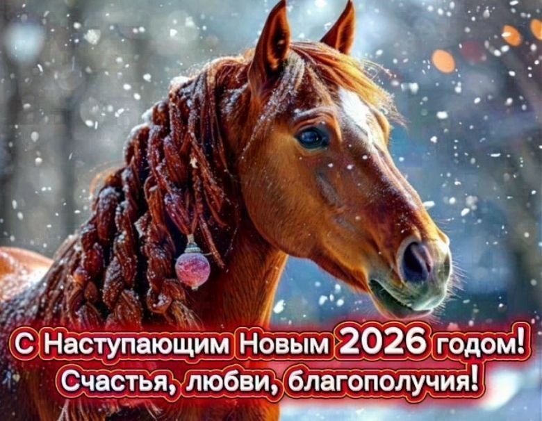Поздравляю с наступающим Новым 2026 Годом Лошади! Пусть этот величественный год подарит вам мощный заряд жизненной энергии, благополучия и невероятных возможностей. Желаю, чтобы все ваши начинания встречали понимание и поддержку, а каждый день был наполнен смыслом и теплом. Пусть вас ждет крепкое здоровье, финансовый достаток и только приятные открытия на пути к вашей мечте.