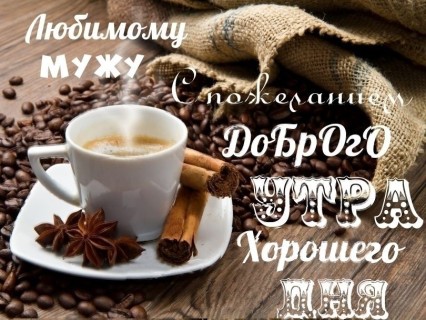 С Добрым Утром, Муженёк мой! Твои глазки открылись, ручки взяли телефон и твои губы улыбнулись моей смс. Люблю тебя и желаю зарядиться бодростью и энергией на весь этот прекрасный день. Пусть чашечка горячего, ароматного кофе будет приятным дополнением к твоему хорошему настроению, обнимаю!